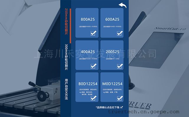 - 系统根据不同材料的硬度,匹配川禾Truer 合适的切割片,并根据切割片的型号自动生成匹配的主轴转速。- 用户可自定义多种方法,随时调用,确保总能实现一致再现的切片结果。